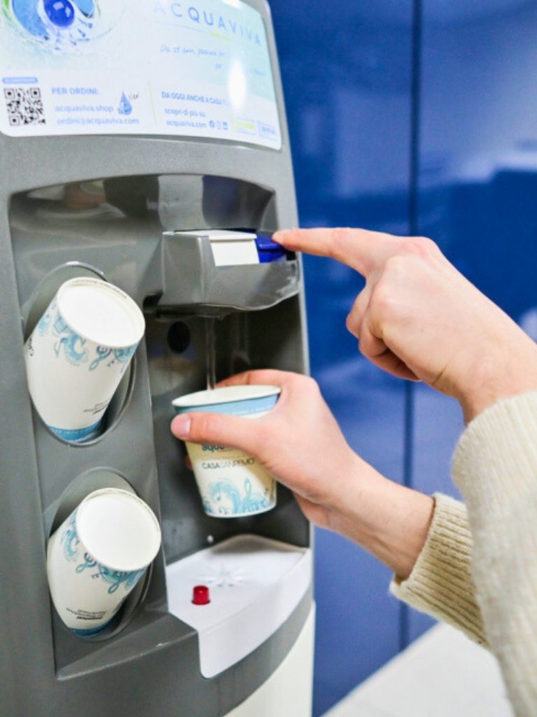Gli erogatori Acquaviva sono stati scelti proprio per la loro installazione zero stress: una semplice presa elettrica trasforma qualsiasi spazio in un’oasi di benessere, offrendo acqua di sorgente purissima senza le complicazioni logistiche della gestione di migliaia di bottiglie.