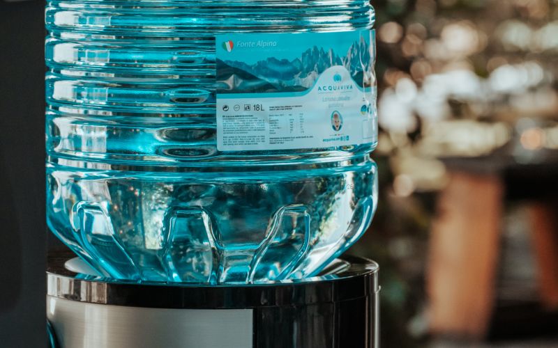 con acqua di sorgente in ecoboccione.