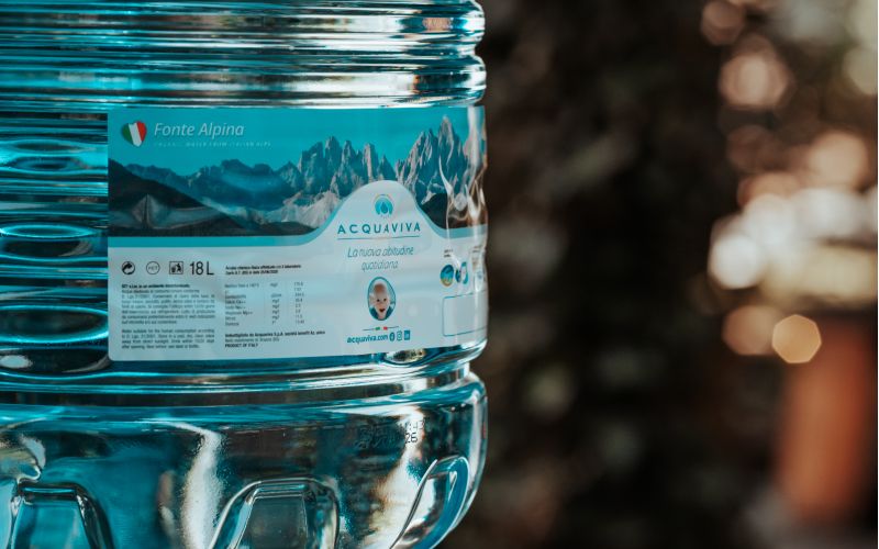 con acqua di sorgente in ecoboccione.
